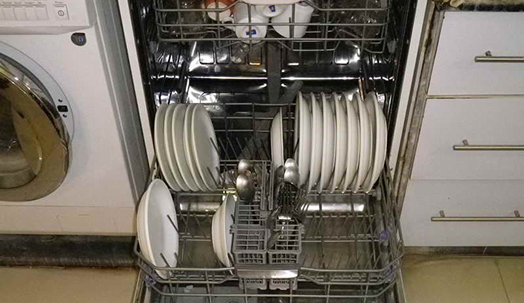 - Нарушение правил эксплуатации. Пользователями часто допускаются следующие ошибки: плотное размещение предметов, перегрузка машины, помещение в ПММ тарелок с остатками пищи. Если машинка будет сильно загружена, то это не позволит ей забрать моющее средство, так как отсек с ним просто не откроется.